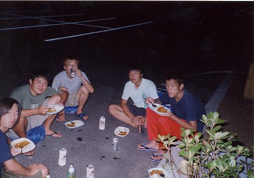 泳ぐのをやめ海岸でまったりしてるみんなを呼んで飯を食う。