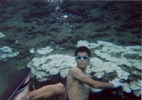 ここは、岸から泳ぎだしても珊瑚が見れる絶好のポイント。