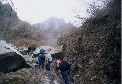 突然、悲鳴とがらがらと岩が降ってくる音が
