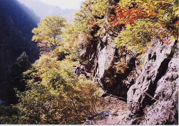 しかし、左は空に向かい垂直にそびえる岩壁。