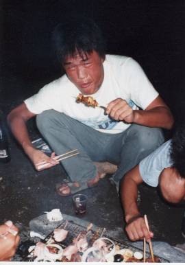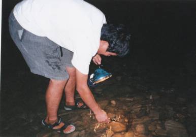 睡魔に勝利した私と吉田は手長エビ取りに興じることにした