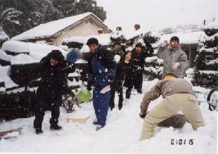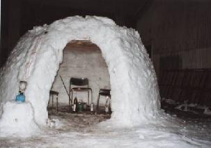 建設地は部室前に決定 雪を集めることから始まった。学校中から雪をかき集めた 徐々に積み上がっていくかまくらの外壁。角度をつけるのが難しかった。 まだ笑顔である この頃には笑顔は消え、惰性で動いていた 二日目についに完成。 かまくらの雄姿