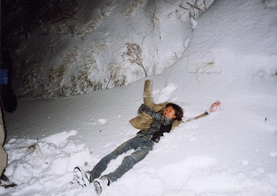 雪に持ち込んだビールをさして・・・冷えた頃に(゚д゚)ウマー。