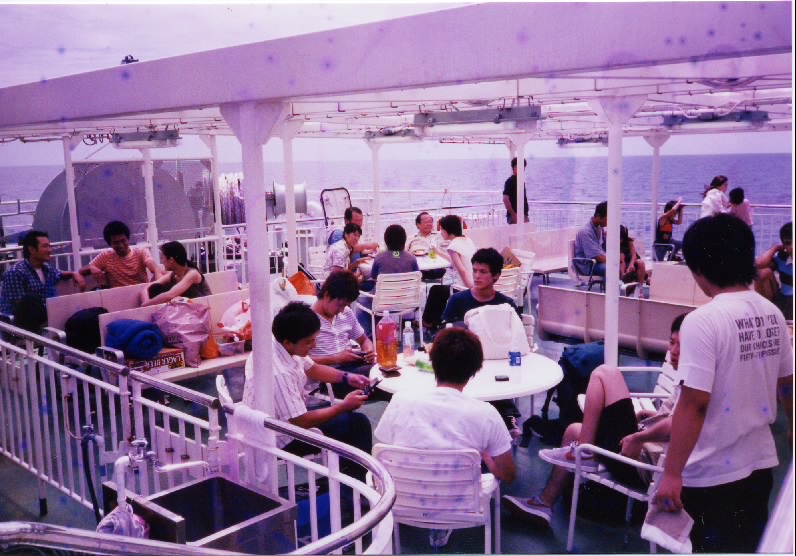 乗船が遅過たため船内にスペースはなくデッキに。