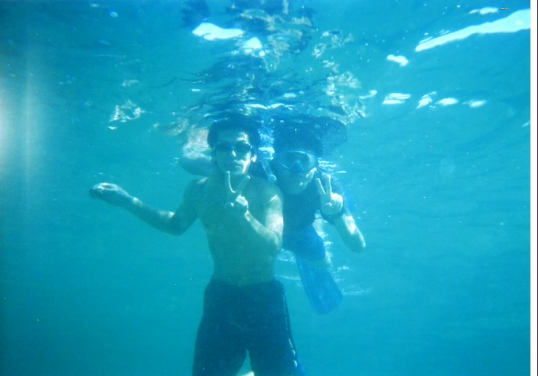 浮き輪を引っ張っていき海の中を見せた。
