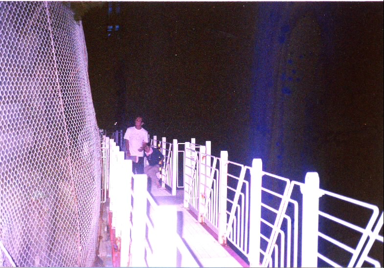 まささんが階段裏に隠れ足をつかみ。