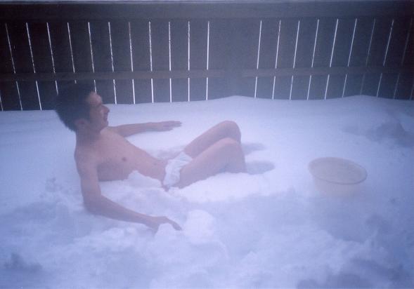 素っ裸で雪にまみれる我々。