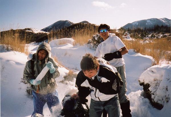 激しい雪合戦。