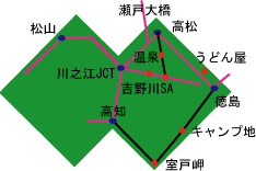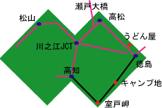 このあと、高知市手前の南国から高速に乗り、高松を目指す。