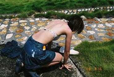 ギャルは水着で入浴です。