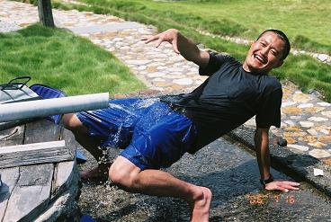 冷たい井戸水を浴びましょう。