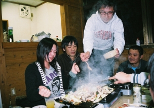 山本がチャンチャン焼きを仕切る。