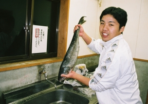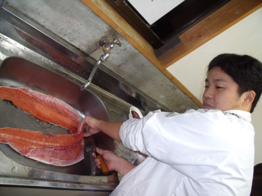 山本が魚をさばきます。