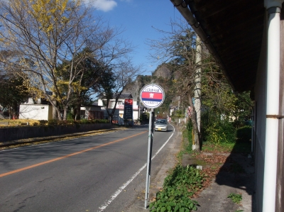 赤面に聞くとバス停を指さした。