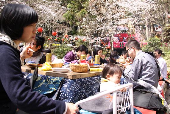 桜の下でおこたに入りお花見。